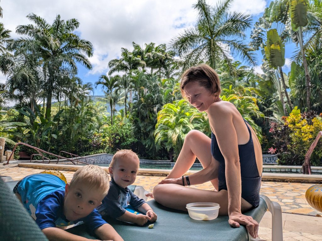 In Tortugero haben wir alles gesehen. Dort ist es ziemlich touristisch und auch ein bisschen schmutzig. Wir fahren wieder mit dem Boot zurück zum Auto und cruisen dann geschmeidige 3,5 Stunden nach La Fortuna. In La Fortuna checken wir ein im Baldi Hot Springs Resort und bekommen (vermutlich wegen unseren knuffigen Kindern) ein kostenloses Upgrade auf die Junior-Suite.