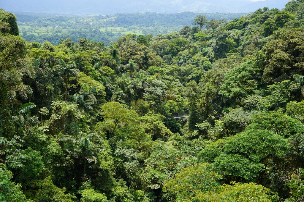 Unterwegs laufen wir unter einem Kapokbaum. Ein Riese des Urwalds, der alle anderen Bäume überragt.
