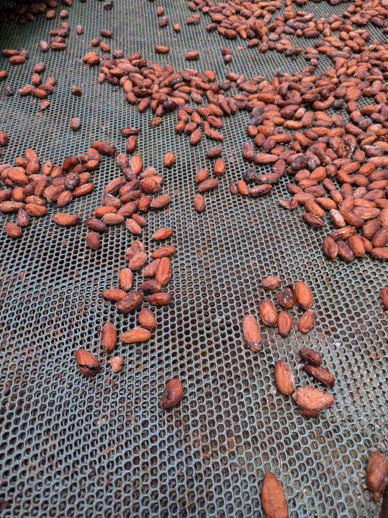 Nach der Ernte werden die Kakaobohnen vier Tage fermentiert, danach 16 Tage getrocknet und geröstet.