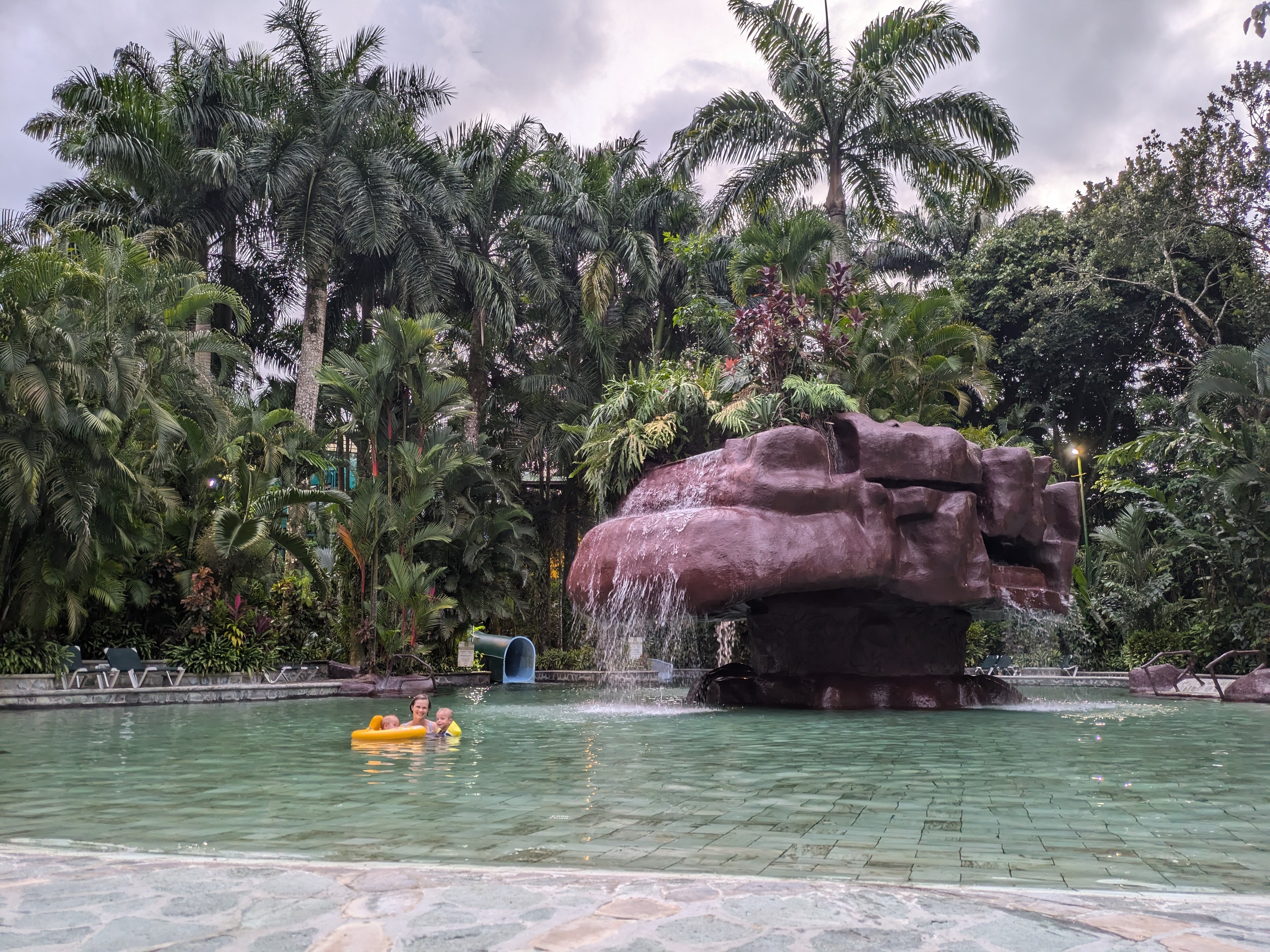 In Tortugero haben wir alles gesehen. Dort ist es ziemlich touristisch und auch ein bisschen schmutzig. Wir fahren wieder mit dem Boot zurück zum Auto und cruisen dann geschmeidige 3,5 Stunden nach La Fortuna. In La Fortuna checken wir ein im Baldi Hot Springs Resort und bekommen (vermutlich wegen unseren knuffigen Kindern) ein kostenloses Upgrade auf die Junior-Suite.