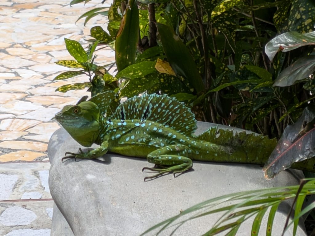 Es ist ein Helmbasilisk oder Stirnlappen-Basilisk. Das haben wir noch nicht herausgefunden.