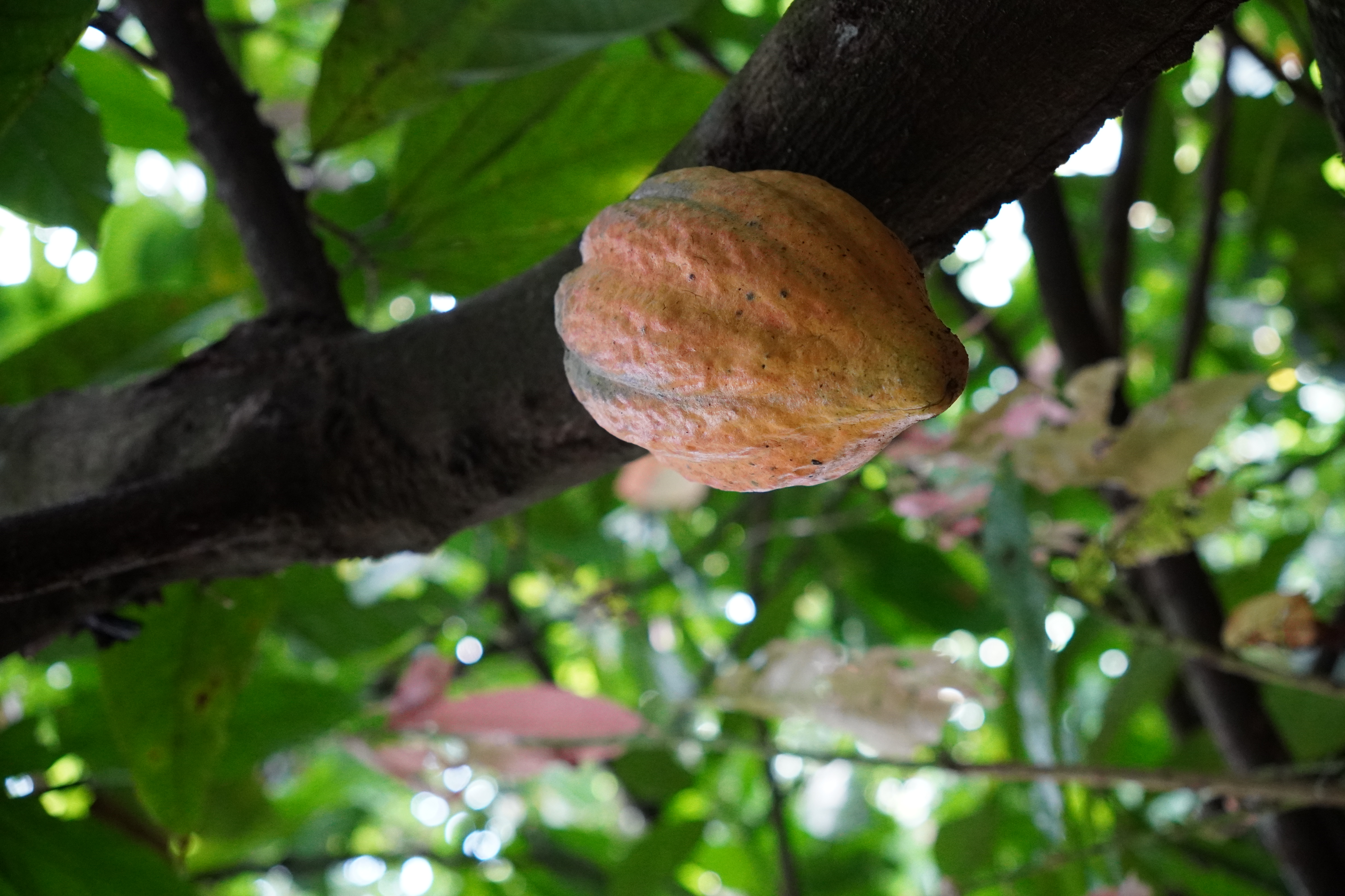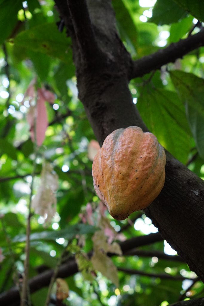 Wenn die Kakaoschote gelb bis leicht orange ist, ist sie erntereif.