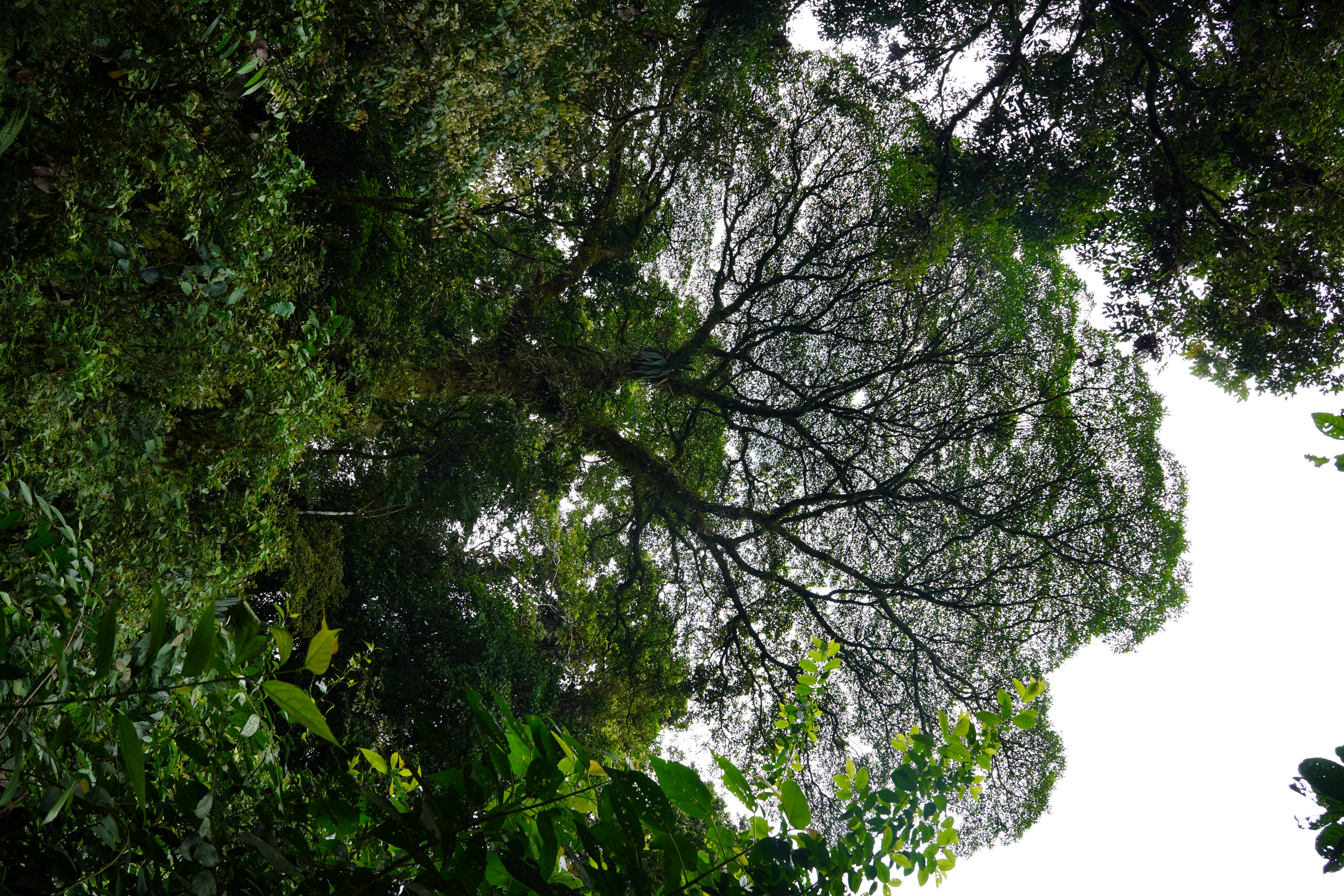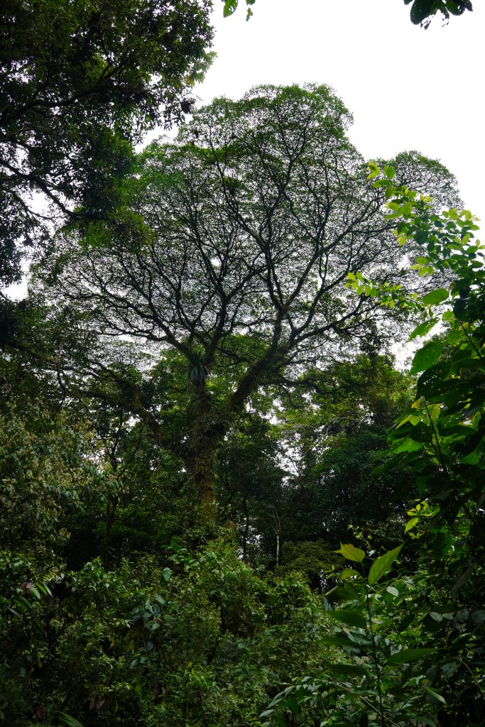 Unterwegs laufen wir unter einem Kapokbaum. Ein Riese des Urwalds, der alle anderen Bäume überragt.